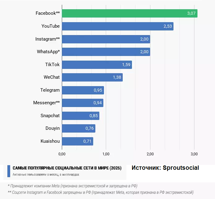 В России Telegram первый мессенджер, который во 2 квартале 2025 г превысил 100 млн. уникальных пользователей. Количество активных пользователей по всему миру превысило 1 млрд в месяц.