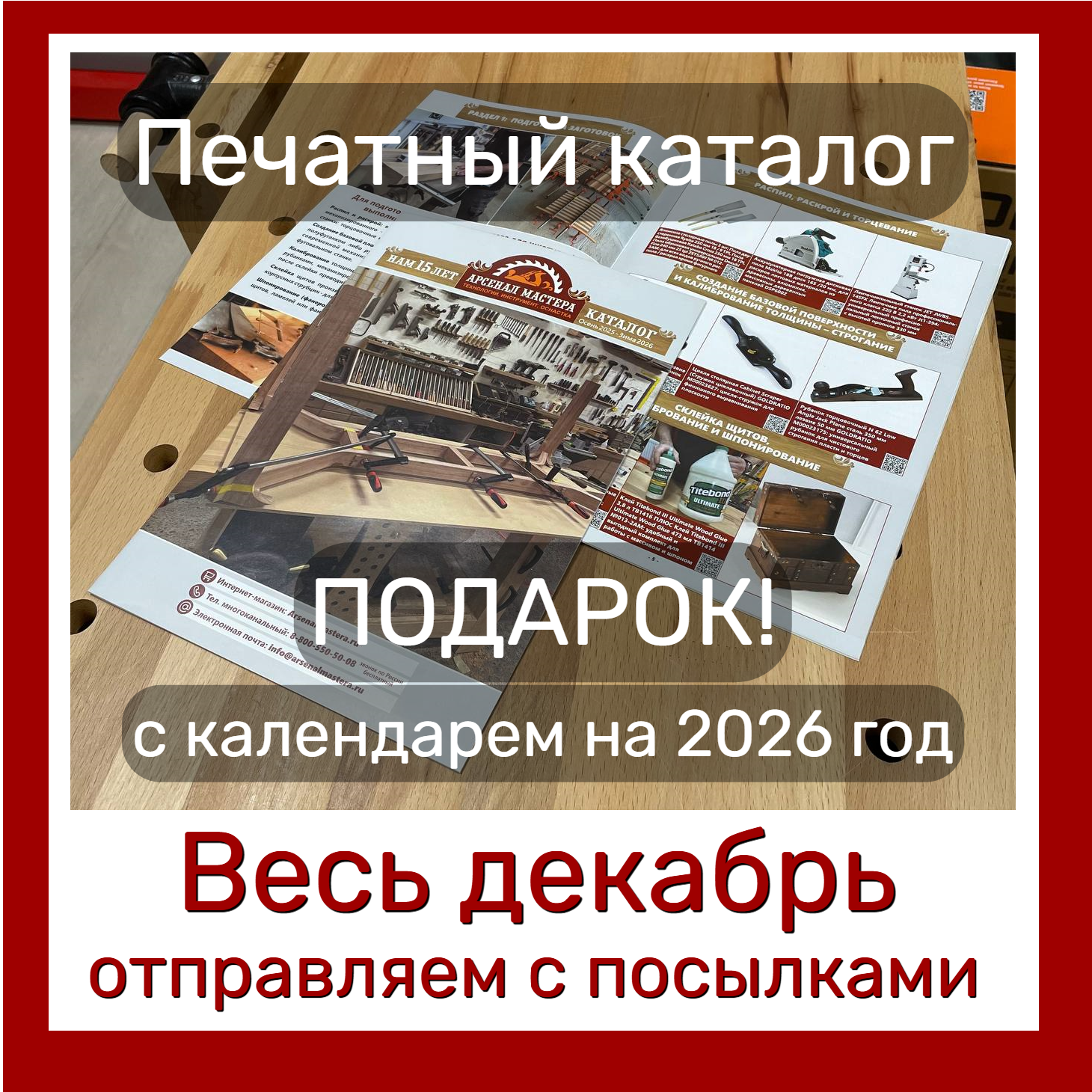 Весь декабрь 2026 к каждой вашей посылке за заказ Арсенал Мастера РУ будет прилагать особенный ПОДАРОК – наш новый печатный Каталог с Хитами и Календарем на 2026 год.