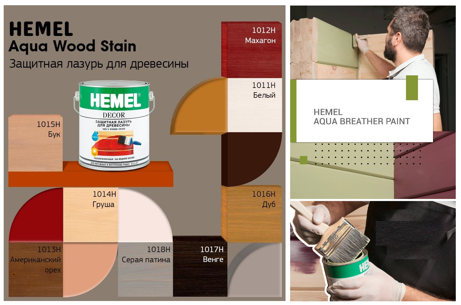 Hemel впускает ЛКМ на водной, масляной и органической основе, для грунтования и пропитки, тонировки, окрашивания. Эксплуатация в доме и на улице, для частного домостроения, объектов промышленного и коммерческого назначения.