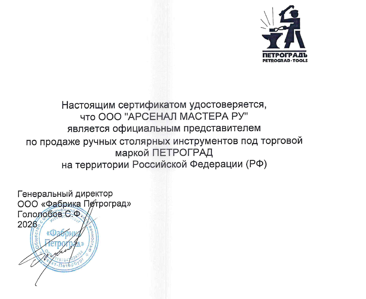Сертификат официального представителя по продажам инструмента под маркой "Петроградъ".- сделано в России.