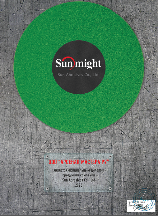 Сертификат официального представителя Sunmight (Санмайт): поставляем целый спектр абразивной продукции.