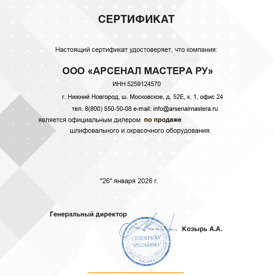 Сертификат официального дилера на Шлифовальные машинки MAXXT и Schtaer. Качество по разумной цене.