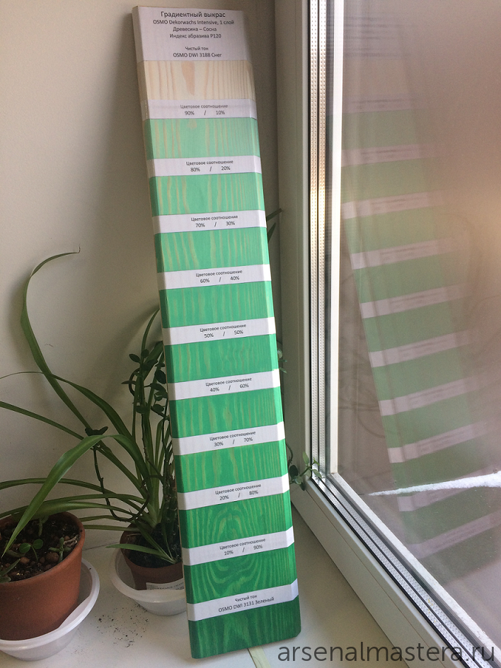 Данные цвета – фотографии покрашенных деревянных образцов на ели.