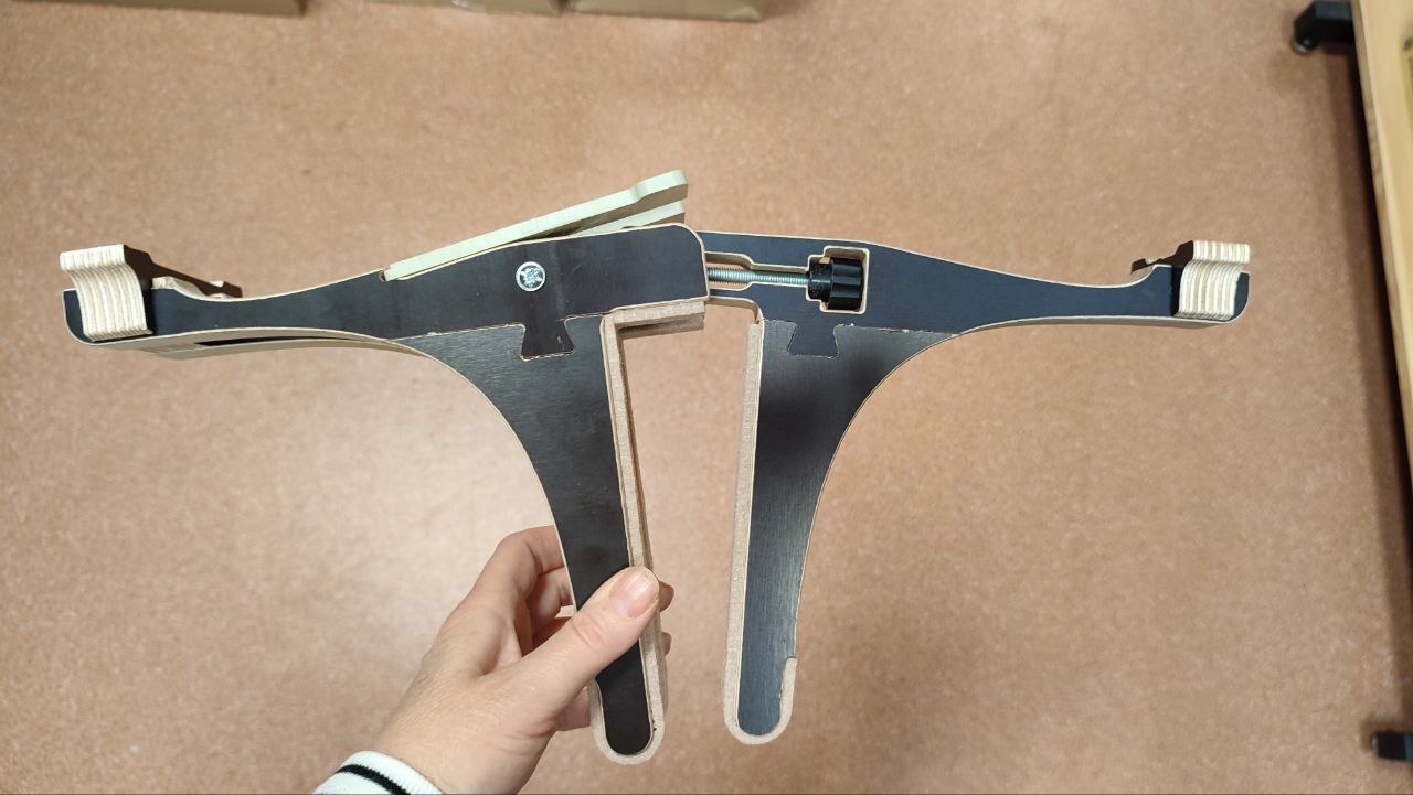 Держатель полотна помогает мастеру при врезке, удерживая дверное полотно от падений и сильных качений.