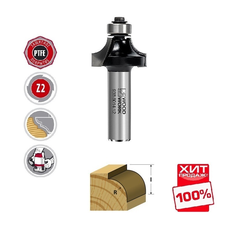 Фреза радиусная калёвочная обгонная с подшипником Серия 938 Woodwork