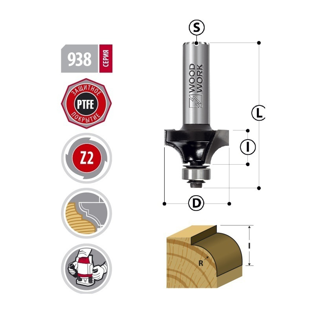 Фреза радиусная калёвочная обгонная с подшипником Серия 938 Woodwork
