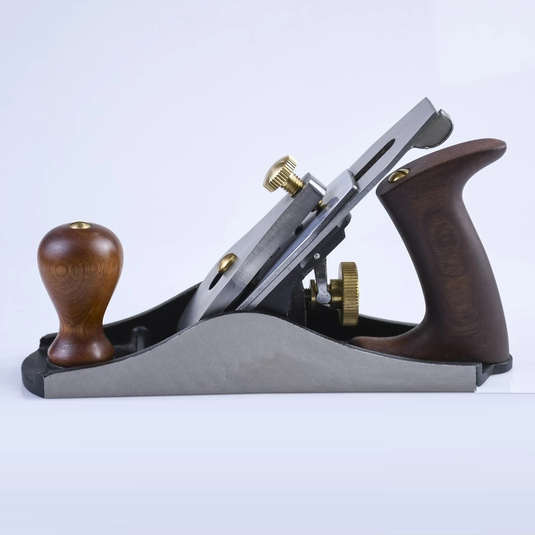 Имеет классическую конструкцию типа Stanley. Колодка из ковкого чугуна, нож из инструментальной стали. Оснащен рукоятями из ценных пород дерева.