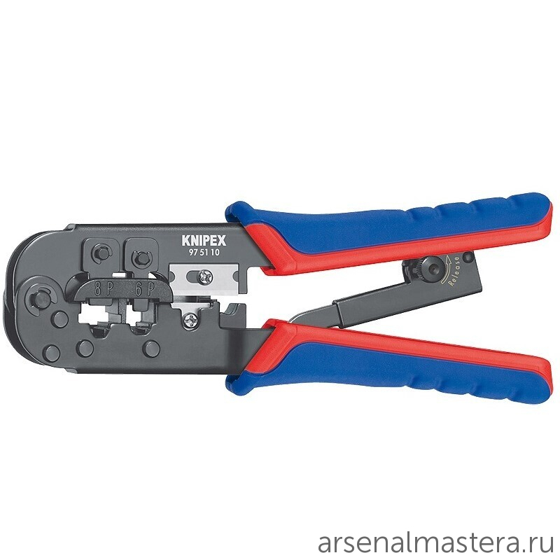 для опрессовки 6- и 8-полюсных штекеров Western типа RJ 11/12 (ширина 9,65 мм) и типа RJ 45 (ширина 11,68 мм)