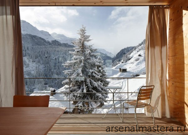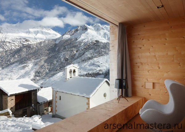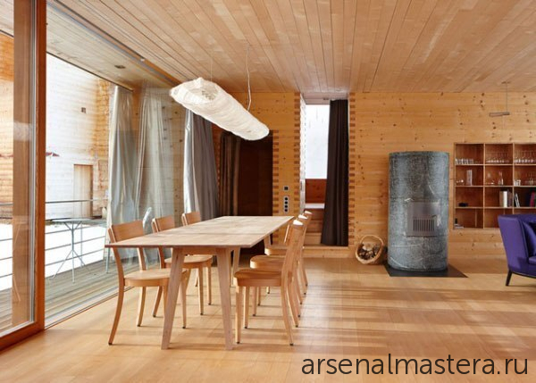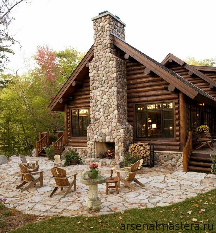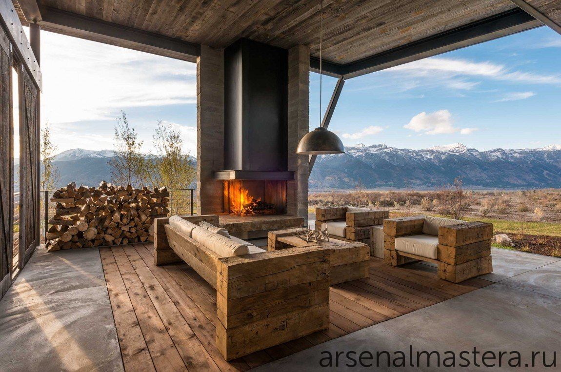Интересная идея открытой площадки для отдыха с камином двойного применения внутри и снаружи: