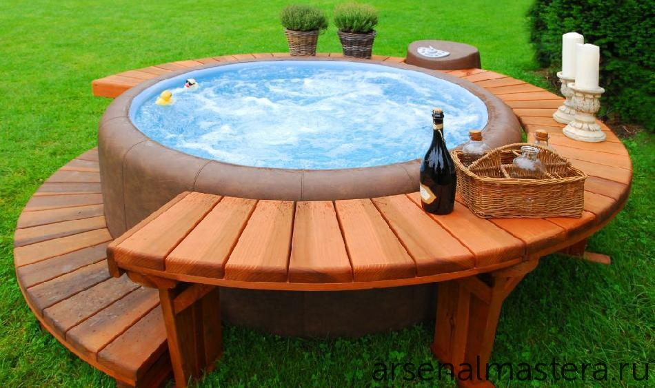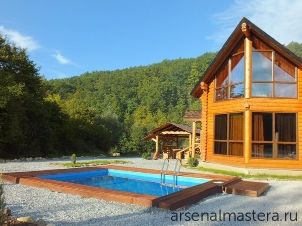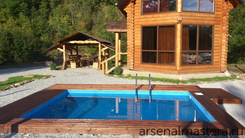 Бассейн с деревянным ограждением: