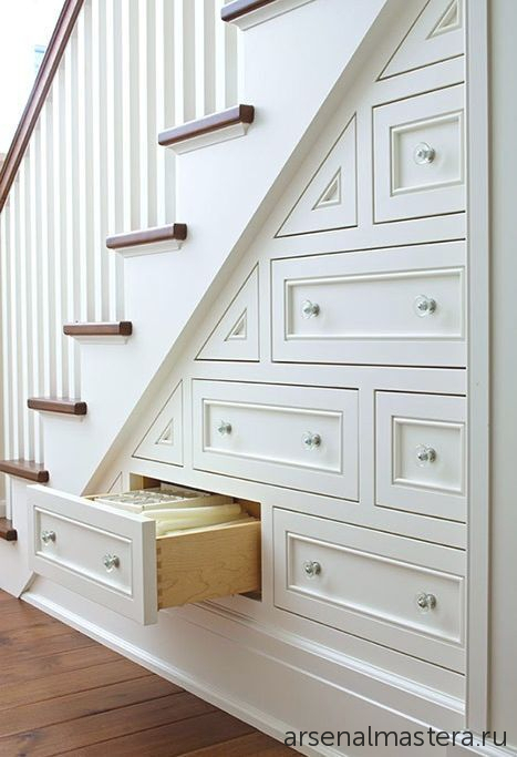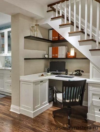 Еще варианты и идеи организации пространства под лестницей: