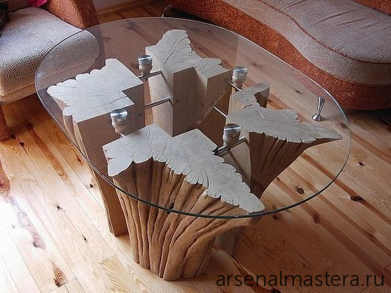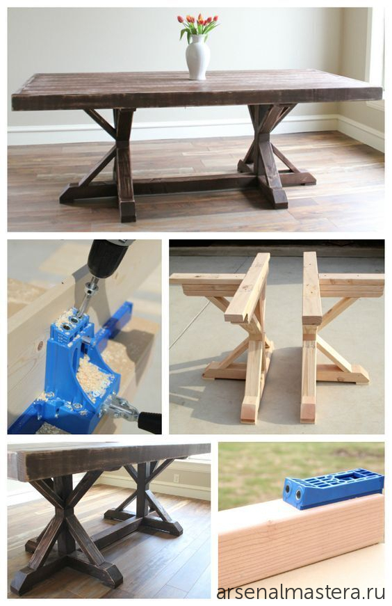 Пример готового изделия: обеденного стола с оригинальным основанием, сделанного с помощью приспособления для косых соединений - кондуктора