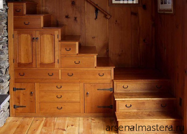 Деревянная лестница - шкаф: