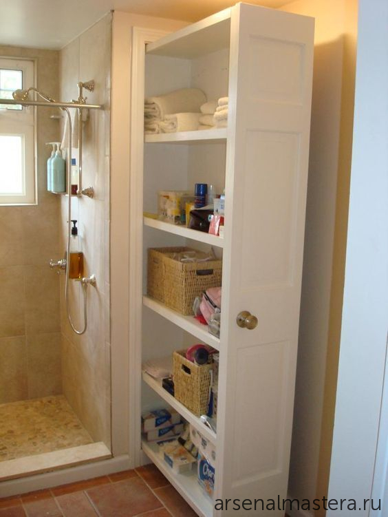 Идея встроенного шкафа в ванной комнате: