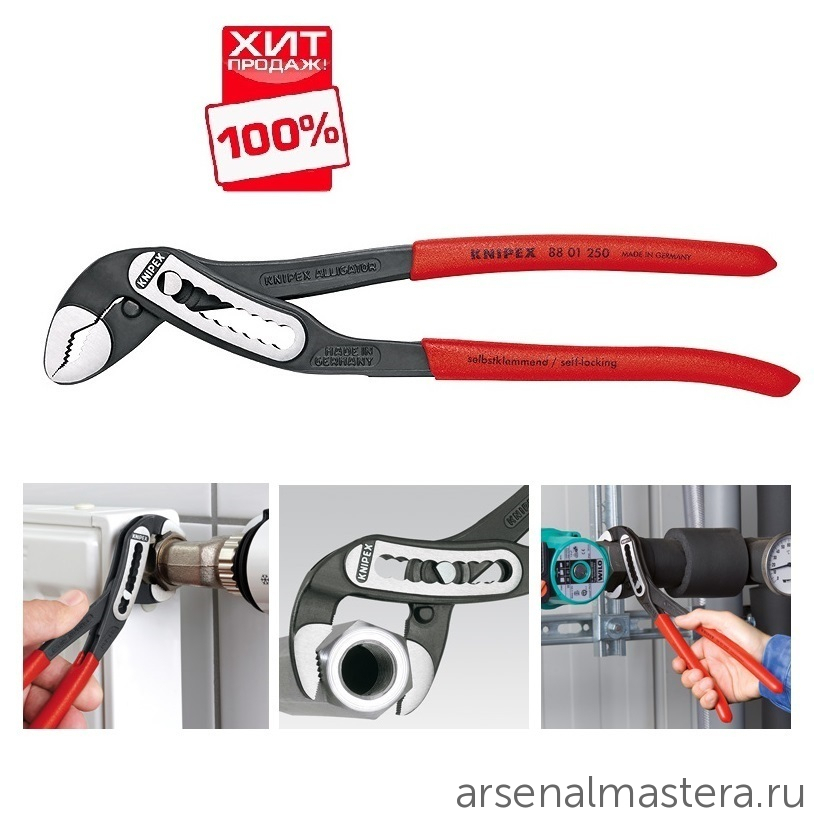 Немецкие инструменты c историей успеха 140 лет: 1973 г клещи для захвата Alligator, 1984 г клещи Cobra, 1988 г болторез Cobolt, 1994 г ключи плоскогубцы, 2016 г ErgoStrip для снятия изоляции. Предприятием KNIPEX (Книпекс) управляет немецкая семья уже в четвертом поколении, и продукция производится - от ковки заготовок до упаковки инструмента - в Вуппертале, Германия. KNIPEX сегодня ведущая марка в мире шарнирно-губцевых инструментов. Профессиональный ручной инструмент: пассатижи, клещи, кусачки, болторезы, тросокусы, разводные трубные ключи, инструменты для электриков (до 1000V), для зачистки изоляции и снятия оболочки кабеля, для работ в области электроники. Инструменты KNIPEX служат действительно долго, легкие, удобные и безопасные.