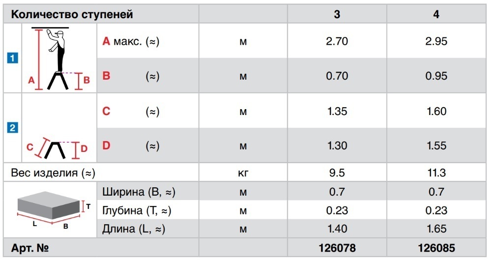 Обладает макс.рабочей высотой (где можно легко работать, стоя на верхней площадке конструкции) 2,7 м. При этом высота, на которой находится сама рабочая площадка 0,7 м.