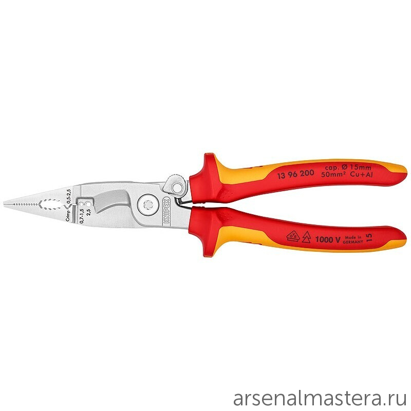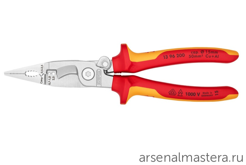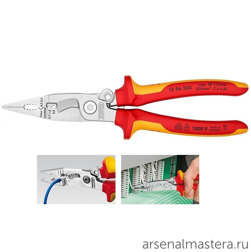 Применяются для электромонтажных работ; для захвата плоского и круглого материала, гибки, удаления заусенцев, резки кабеля, удаления изоляции и опрессовки контактных гильз.
