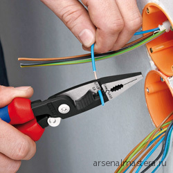 Применяются для электромонтажных работ; для захвата плоского и круглого материала, гибки, удаления заусенцев, резки кабеля, удаления изоляции и опрессовки контактных гильз