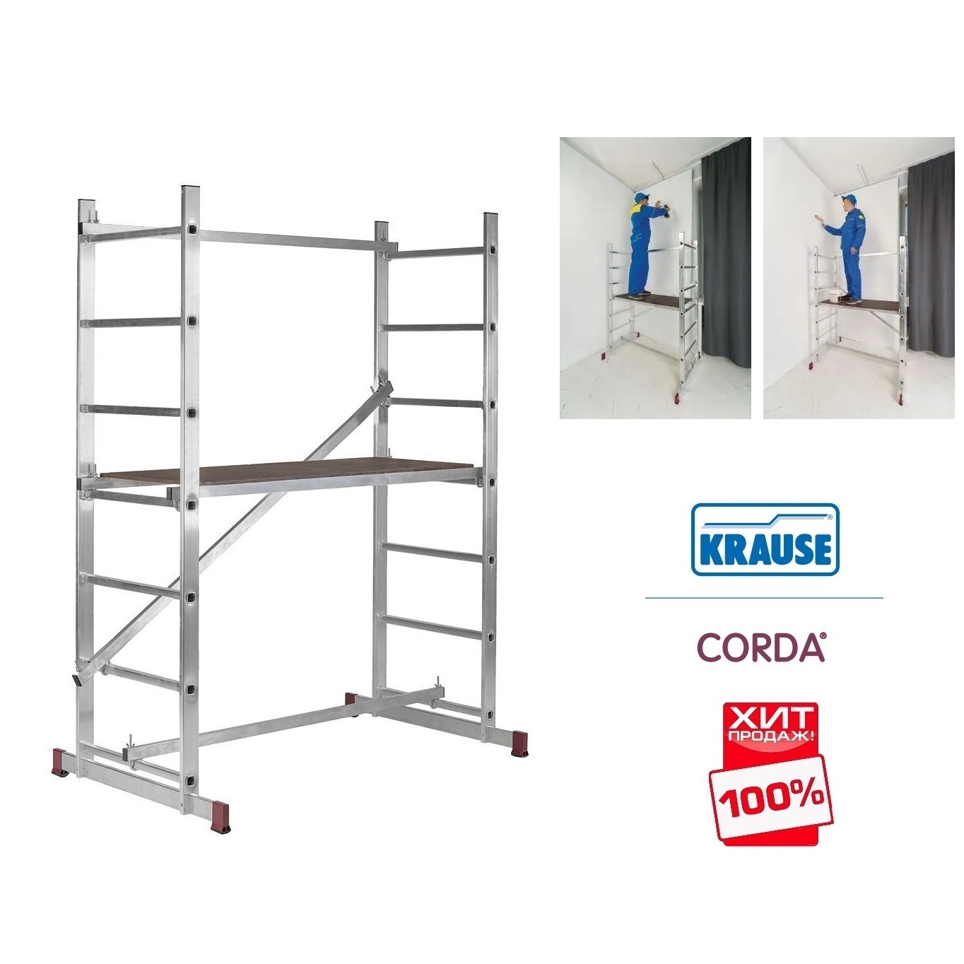 Грузоподъемность 150 кг. Продукт сертифицирован в строгом соответствии с ГОСТ Р 58752-2019 и DIN EN-131