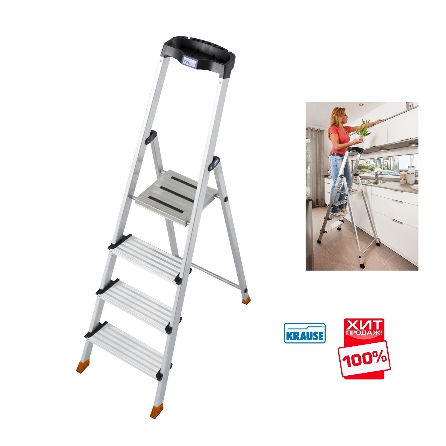 Боковины стремянки охвачена системой безопасных шарниров.