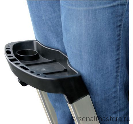 Высокая эргономичная дуга безопасности со встроенным крюком для ведра и лотком для инвентаря. Профилированная стенка полки служит дополнительной опорой для ног.