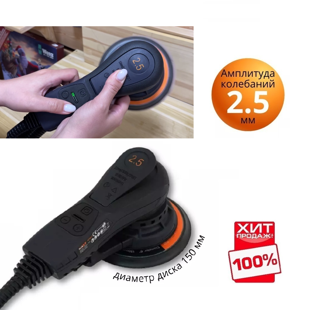 Шлифовальная машинка с ходом эксцентрика 2,5 мм и магнитным тормозом. Оснащена бесщеточным двигателем, он отличается долговечностью, уменьшенной вибрацией и пониженным энергопотреблением. Конструкция двигателя обеспечит максимальный крутящий момент с высокой мощностью.