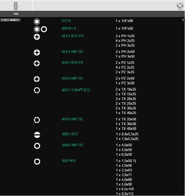 12 битов Impaktor (с маркировкой "Take it easy") длиной 50 мм для особо сложных задач,