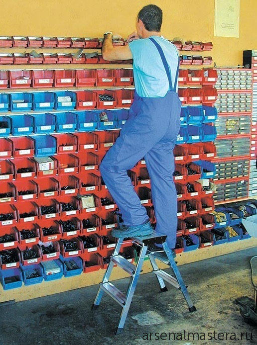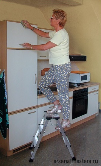 Прочная, стойкая стремянка для внутренних бытовых работ: легко перемещается, благодаря системе Roll/Stop, малогабаритная и простая в использовании.