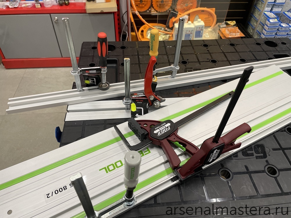 Форма жёсткой скобы подогнана к пазу шин-направляющих и профилям MFT и PRECISIO