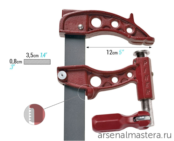 Губки выполнены из ковкого чугуна, который обладает повышенной прочностью при растяжении и высоким сопротивлением удару.