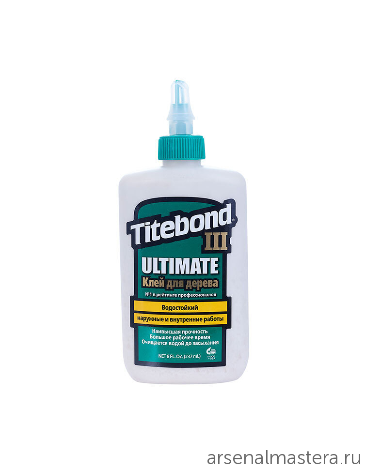 TITEBOND III Ultimate Wood Glue - это первый очищаемый водой однокомпонентный клей для дерева с испытанной на практике повышенной влагостойкстью.