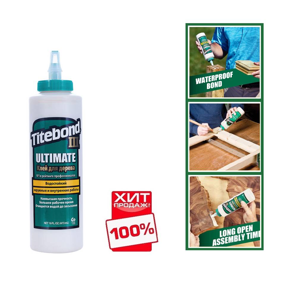 TITEBOND III Ultimate Wood Glue - это первый очищаемый водой однокомпонентный клей для дерева с испытанной на практике повышенной влагостойкостью.
