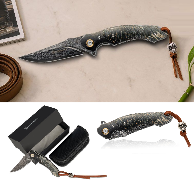 Клинок из высококачественной дамасской стали VG-10 с 76 слоями, что обеспечит исключительную остроту, прочность и долговечность.