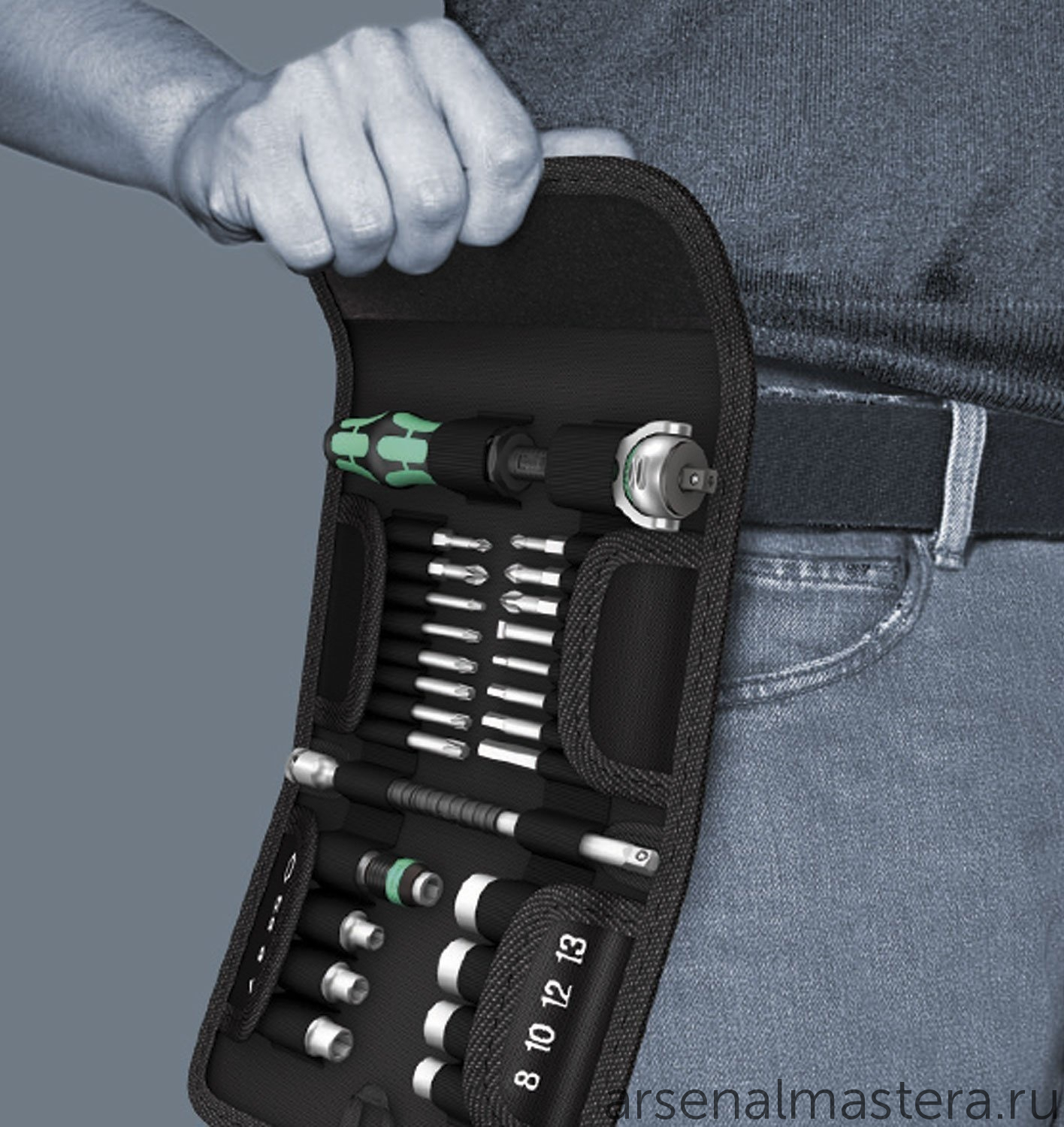 Компактный набор включает 26 штук в сумке для крепления на поясе: