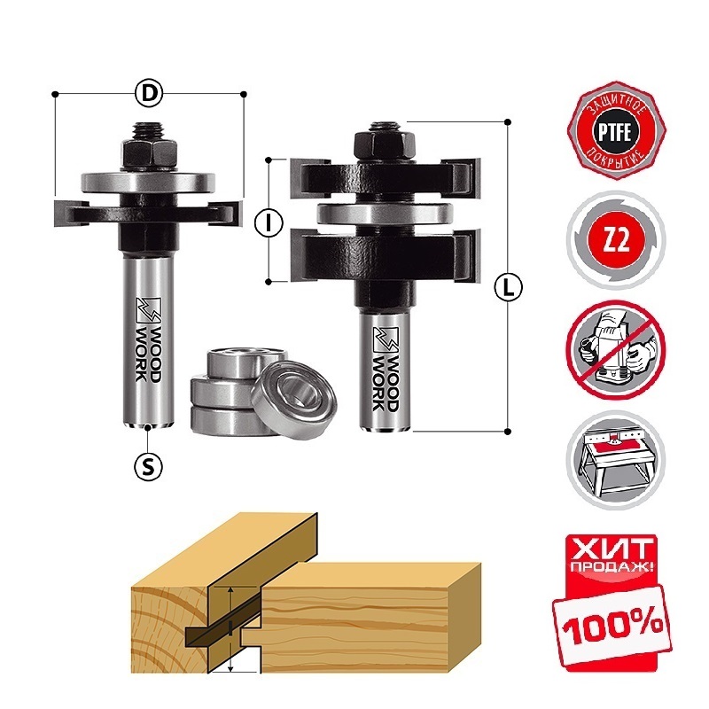 ХИТ! Комплект фрез шип - паз D 44,4 I 28,65 L 71 S 12 Woodwork 991.2803.12