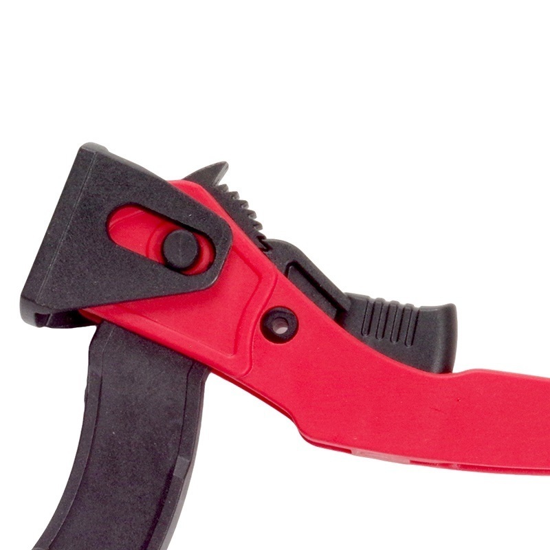 Стальной стержень, усиленные полимерные губки и большой защелкивающийся рычаг образуют уникальный легкий зажим