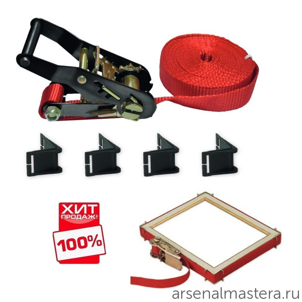 Предназначен для стягивания четырех угольных конструкций при склейке (производство рам, рамок, мебельных фасадов и т.п.) или крепления грузов при перевозке.