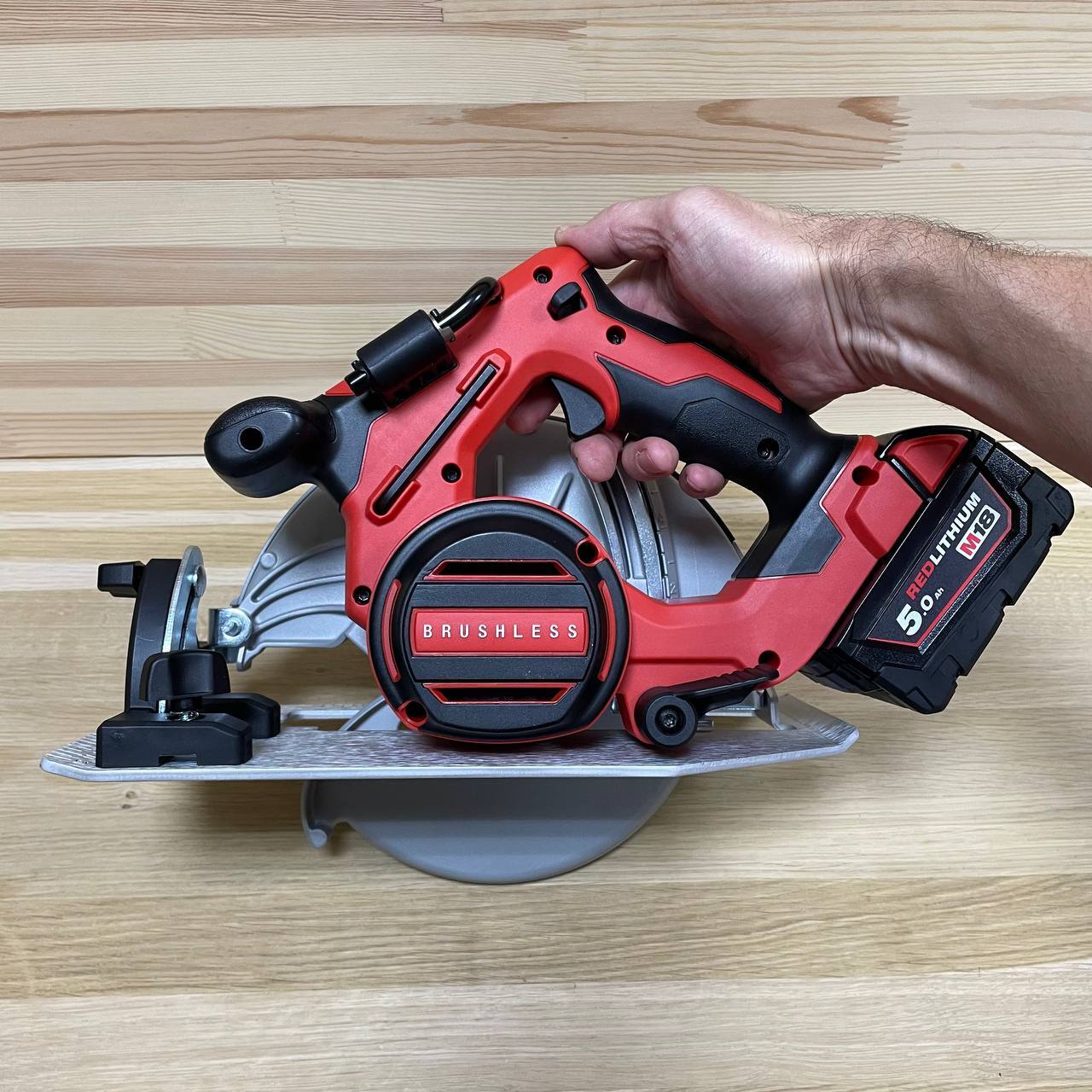 М18 Бесщеточная циркулярная пила с диаметром диска 190 мм обеспечивающая глубину реза 66 мм, что позволяет резать стопку из трех 19 мм ОСП листов