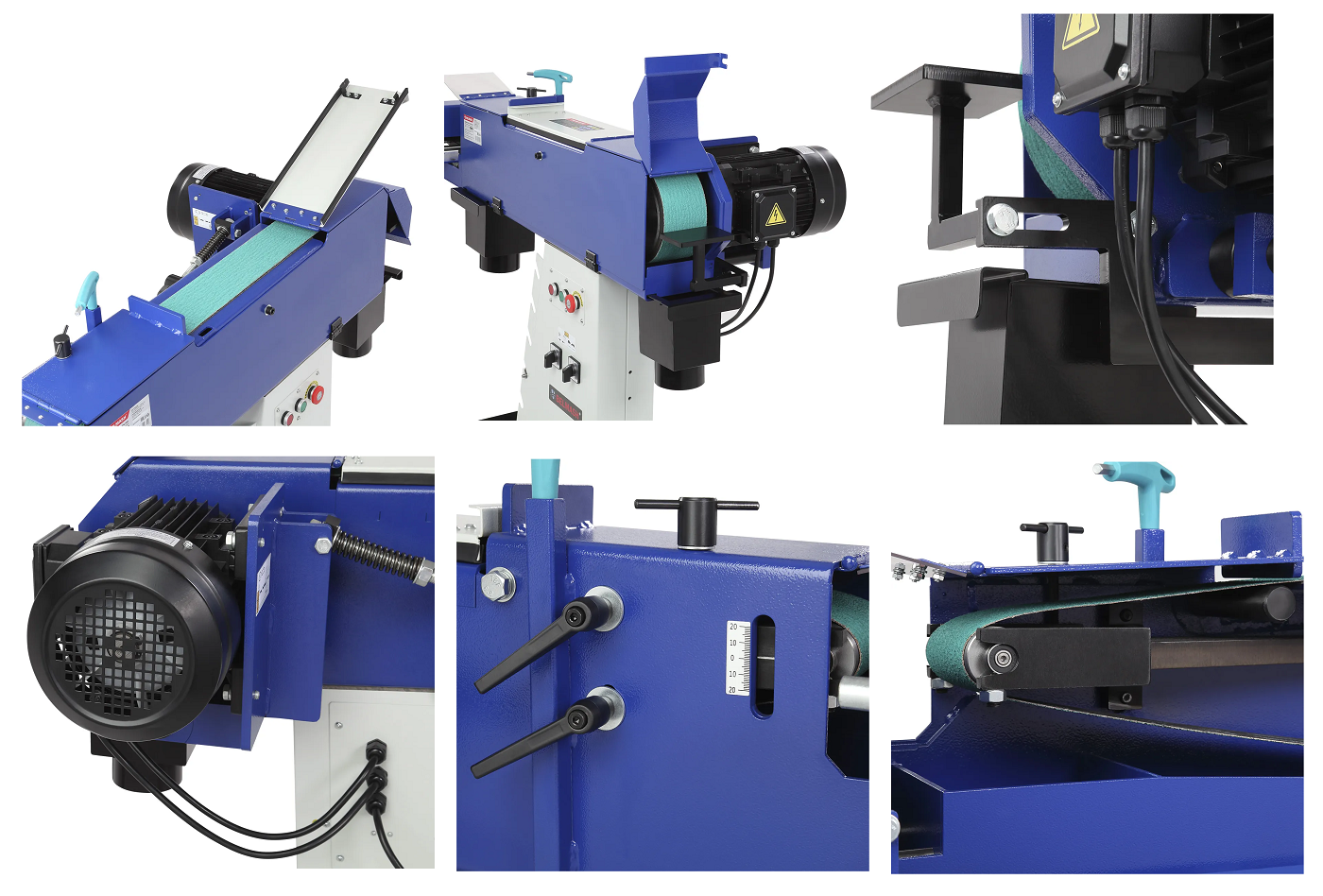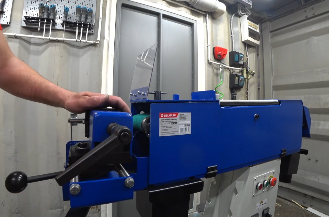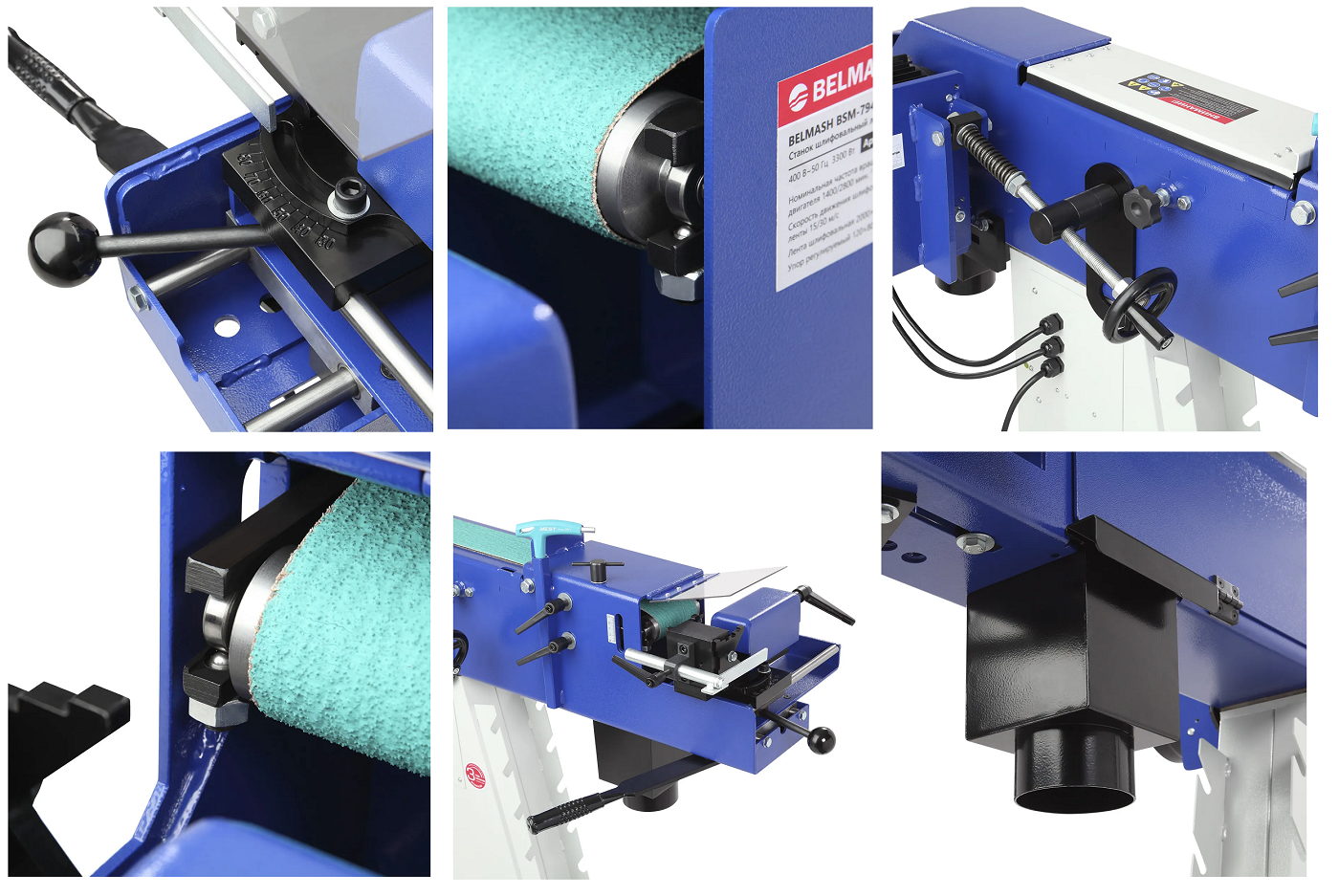 На станке шлифовальная лента размером 2000×98,5 мм и зернистостью 80 грит. Скорость движения шлифленты 15 и 30 м/с. Применение шлифлент разной зернистости позволит использовать станок для обработки различных материалов. Частота вращения шлиф. барабана 1400 /2800 об/мин.