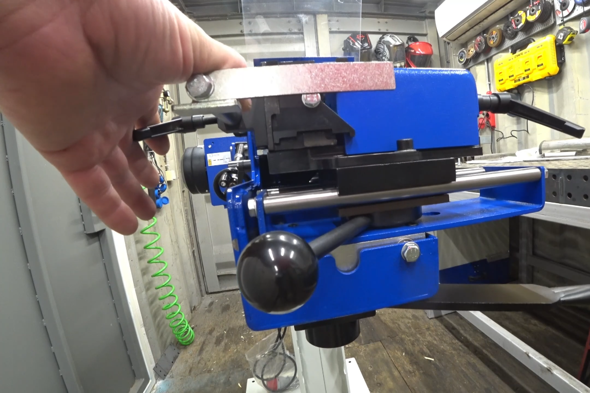 Модель оснащена регулируемыми тисками с углом поворота 30 -90°, что дает возможность обработки торцов под нужным углом.