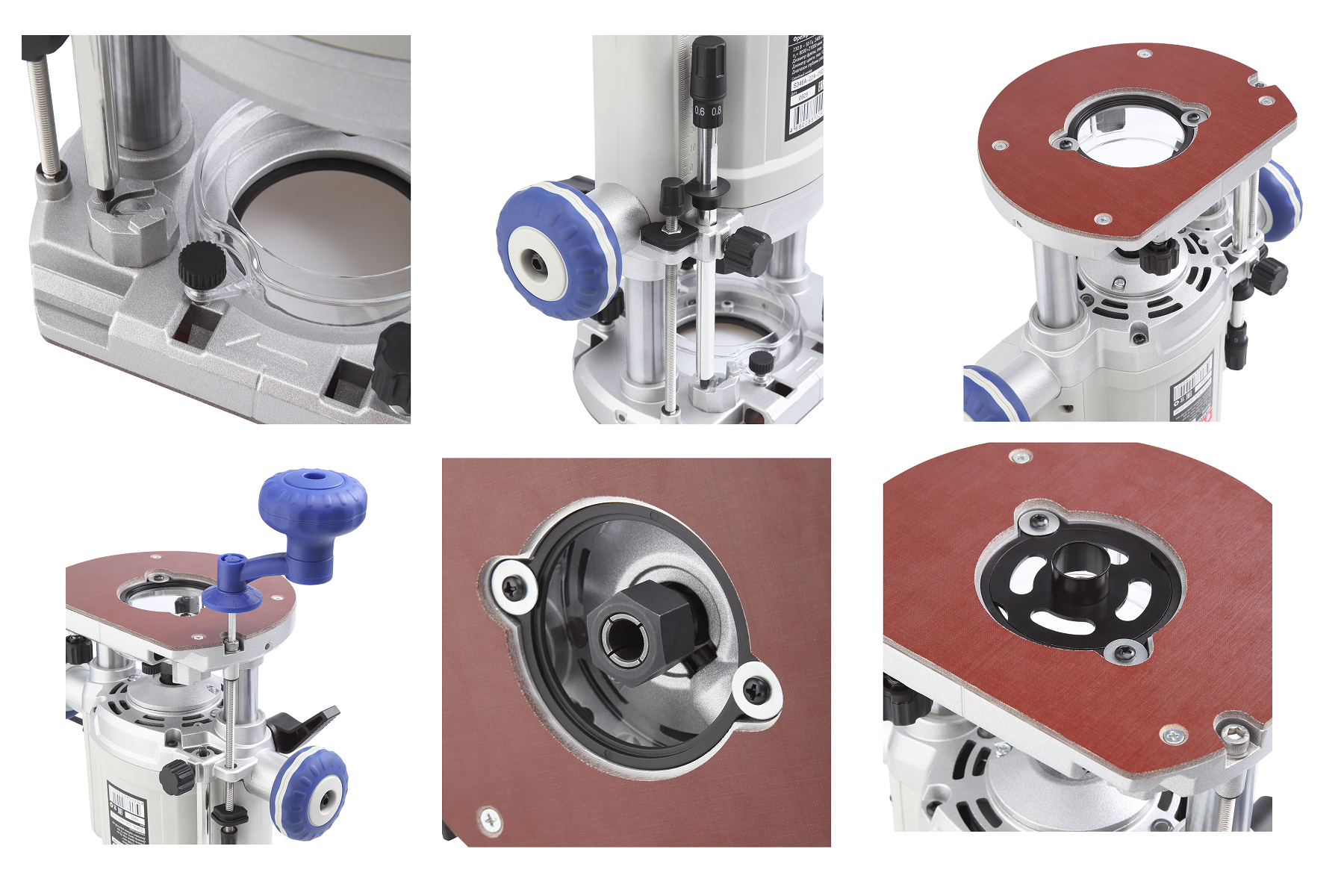 В комплект входят крепёжные винты, ручка регулировки вылета шпинделя, позволяющая настраивать высоту фрезы со стороны стола.