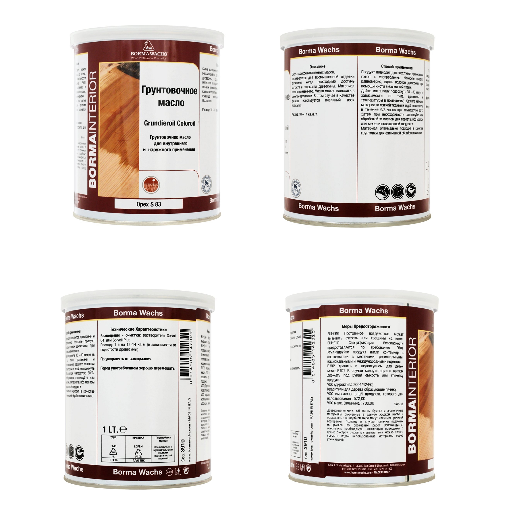 Смесь высококачественных масел. Масло - грунт для древесины Grundierol Borma Wachs на уретановых маслах. Готово к использованию.
