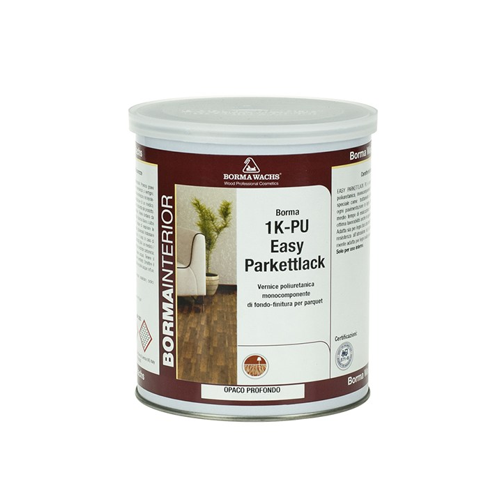 Новинка! Паркетный лак полиуретановый однокомпонентный самогрунтующийся Borma Easy Parkettlack 1K-PU, блеск 30 - 40% бесцветный матовый 1 л, для внутренних работ 4160-30.PU