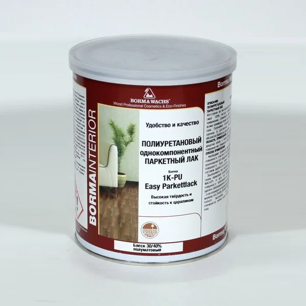 При нанесении образует износостойкое, прочное покрытие, предотвращает царапины, разбухание. Устойчив к влажной уборке. Лак не надо разбавлять, он готов к применению.