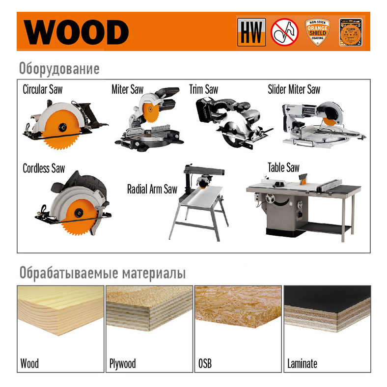 Для чистого реза и отличной производительности на циркулярных столах и торцовочных пилах.