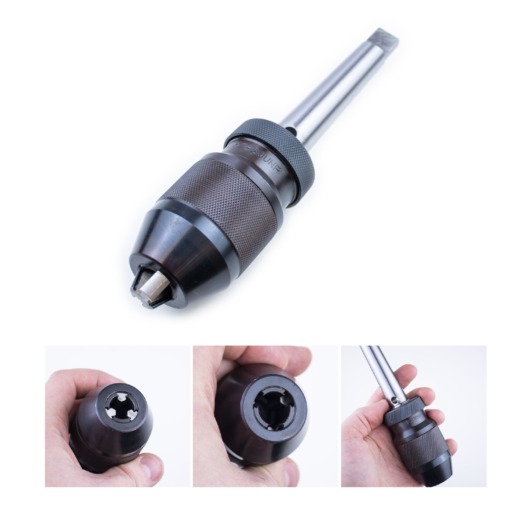 - Быстрозажимной сверлильный патрон в сборе с оправкой (хвостовиком) типа конус Морзе КМ2 (B18).