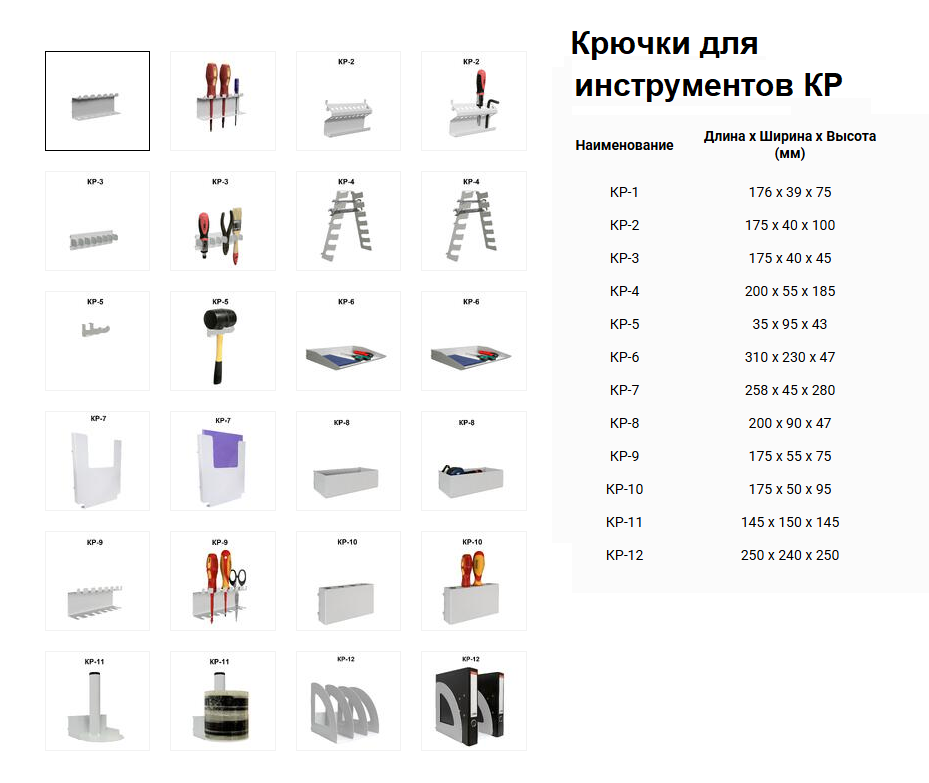 Крючки для инструментов Gresson предназначены для размещения за рабочим местом инструментов, используемых в работе.