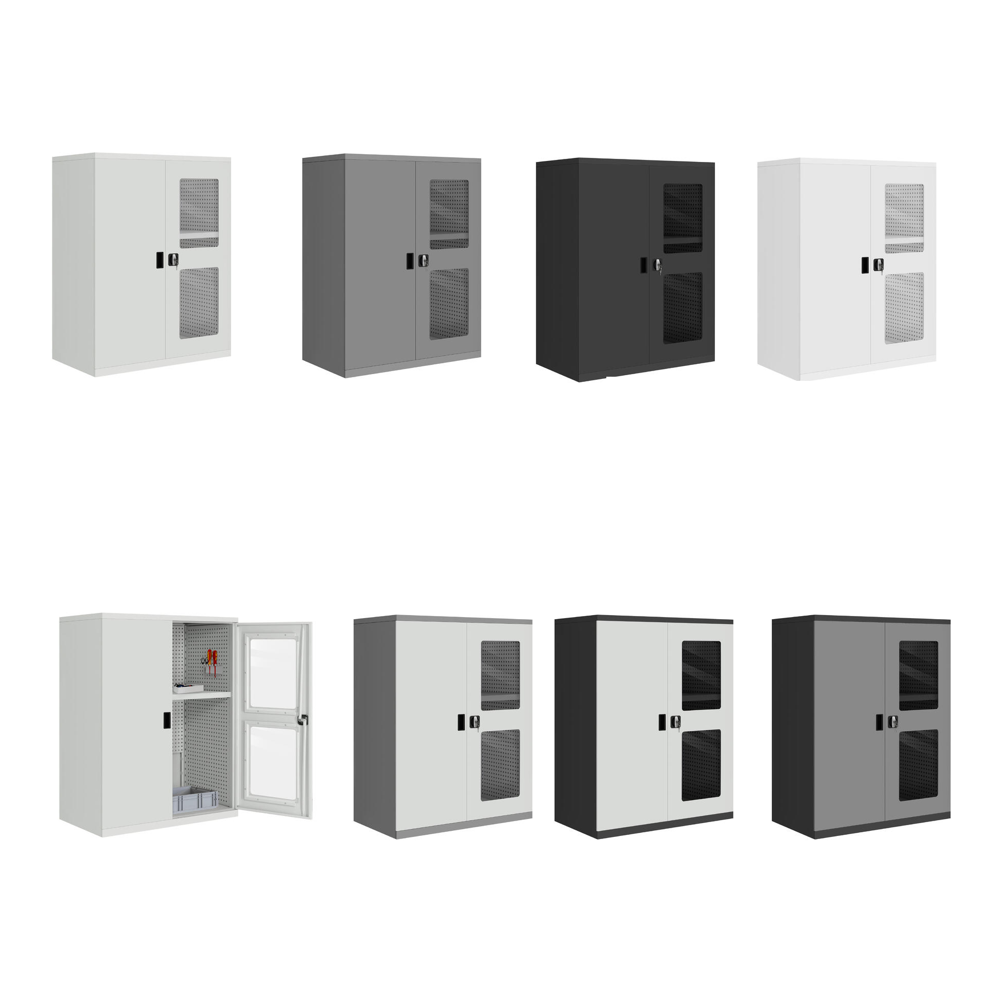- В стандартной комплектации имеет 2 перфорированные боковые стенки и 2 перфорированные задние стенки, что увеличивает пространство для размещения инструментов.