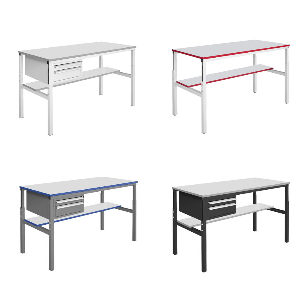 Доступен для покупки такой же стол в антистатическом исполнении, согласно требованиям стандарта ГОСТ IEC 61340-5-1-2019, где на лицевой стороне столешницы маркировка ESD (Electrostatic sensitive device), обозначающий работу с материалами, чувствительными к электростатическому разряду. Основу столешницы составит плита, облицованная HPL ESD пластиком. В комплект поставки набор для заземления столешницы: болт и провод с клеммой.