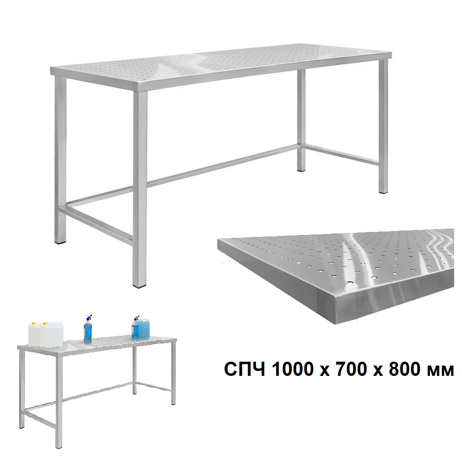 Вариант столешницы без перфорации обозначается СПЧС. Возможно изготовление конструкции по чертежам с изменением вида перфорации поверхности и размеров стола.